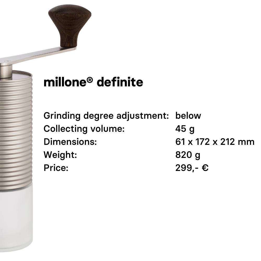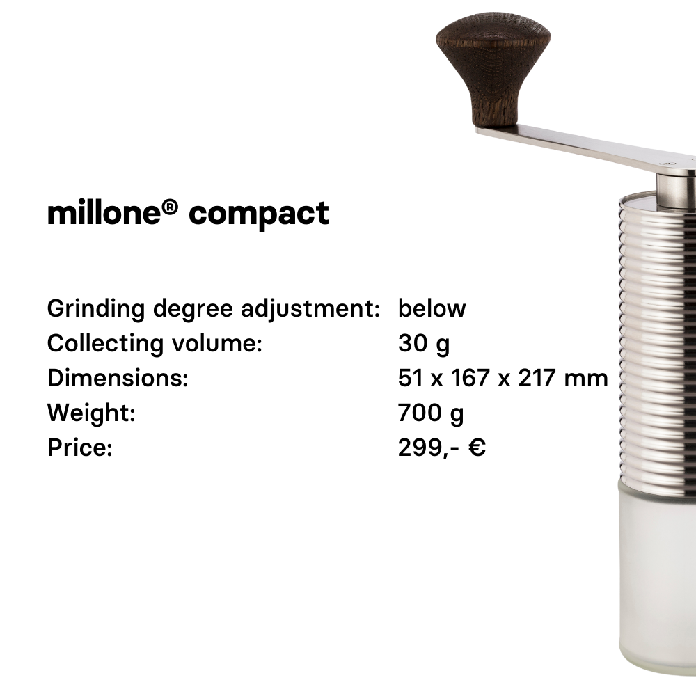 The millone® coffee grinders will make your heart beat faster as a coffee lover. The precise grinding performance, the maximum grinder quality and the chic, taste-protected design make the grinder, made entirely of stainless steel by hand, an indispensable companion for you to enjoy your coffee exactly the way you love it.